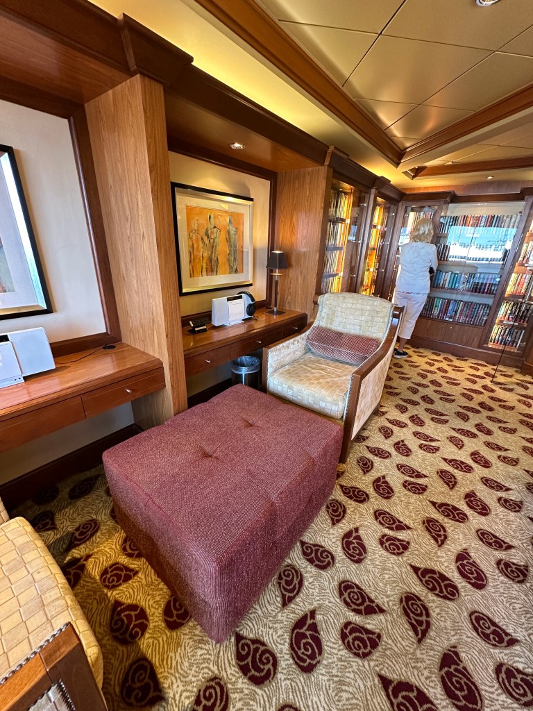 This is also the first place we go when we board the Serenity. There are categories for every reader and if reading is not for you, nestle into one of the many cozy chairs and slip on a set of Bose Headphones equipped at each station and just chill out and listen to music or an audio book.