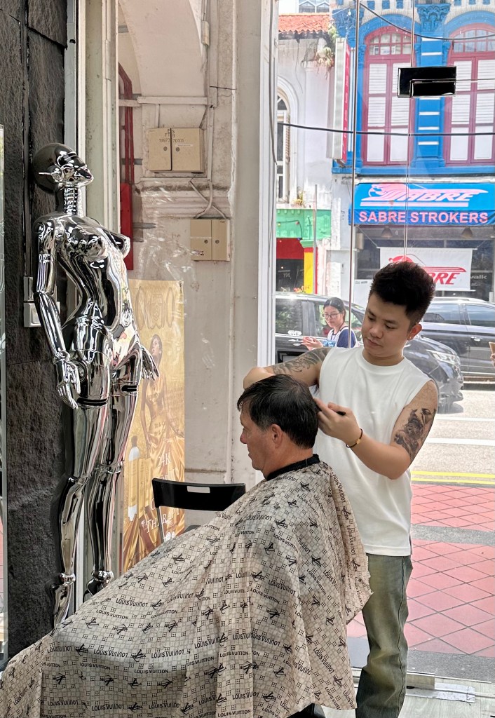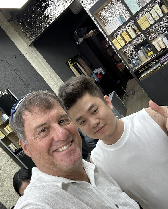 Along the way we passed a hair stylist shop called John’s Salon. The stylists inside looked hip, the place pumping some good music and I desperately needed a hair cur after being onboard for a month. What could go wrong? Nothing! This was truly the best cut of my life and so relaxing with a shampoo and head massage for a mere $20 (which included a handsome tip). I wrote them a spectacular review on Google of which they thanked and welcomed me back any time. The flight from FL to Singapore was going to be an issue.
