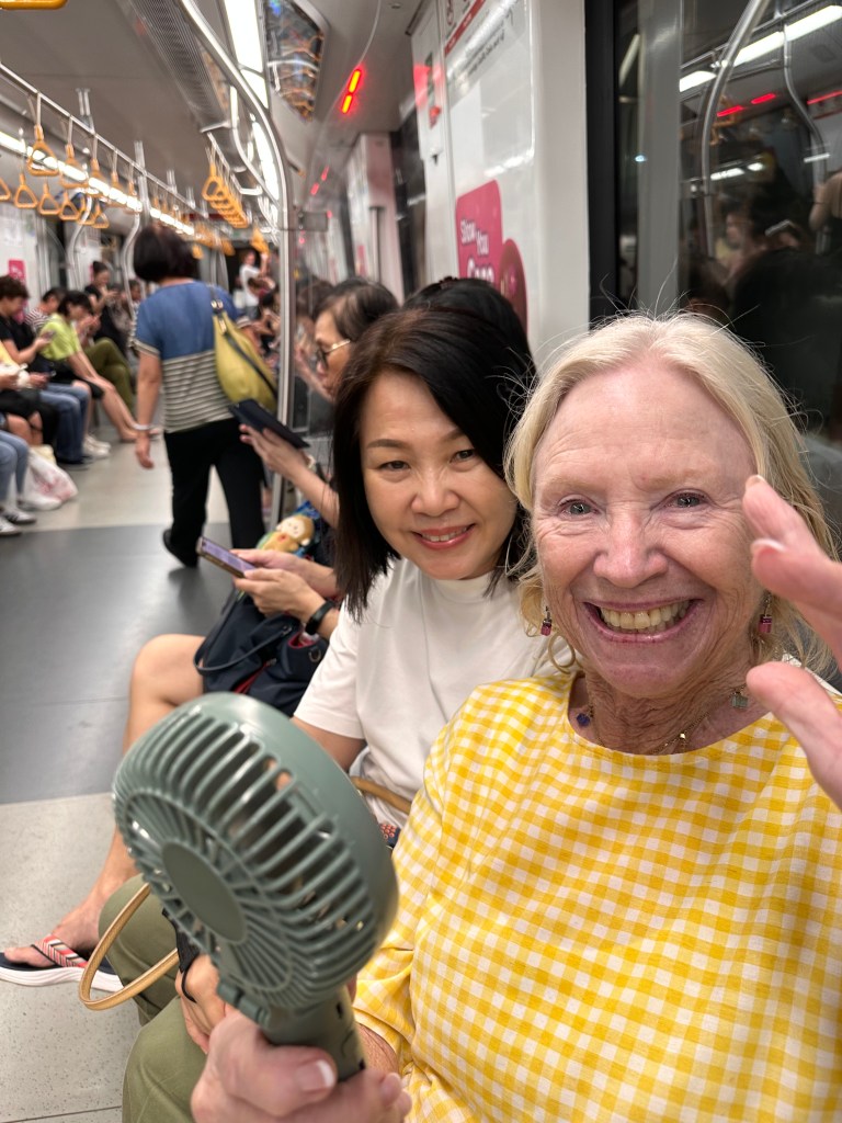 Feeling much better we made our way to the MTR and Meredith met a gal who offered her a portable fan. They became fast friends.