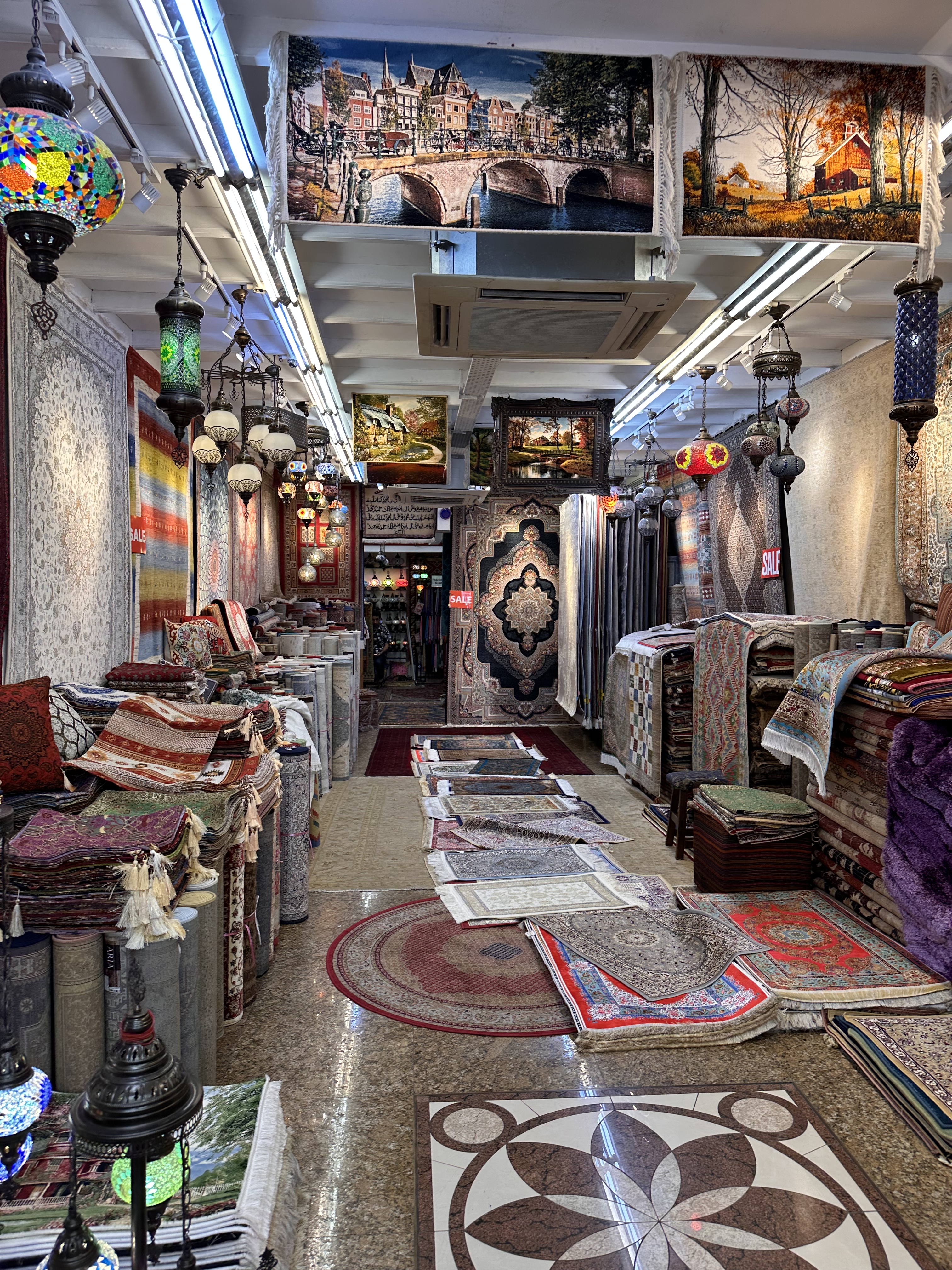 We did not get one block in before we entering a Middle Eastern shop lined with rugs, scarves, Moroccan lamps, pillow covers, etc. and the street is lined with these shops that measure 15’ x 40’.