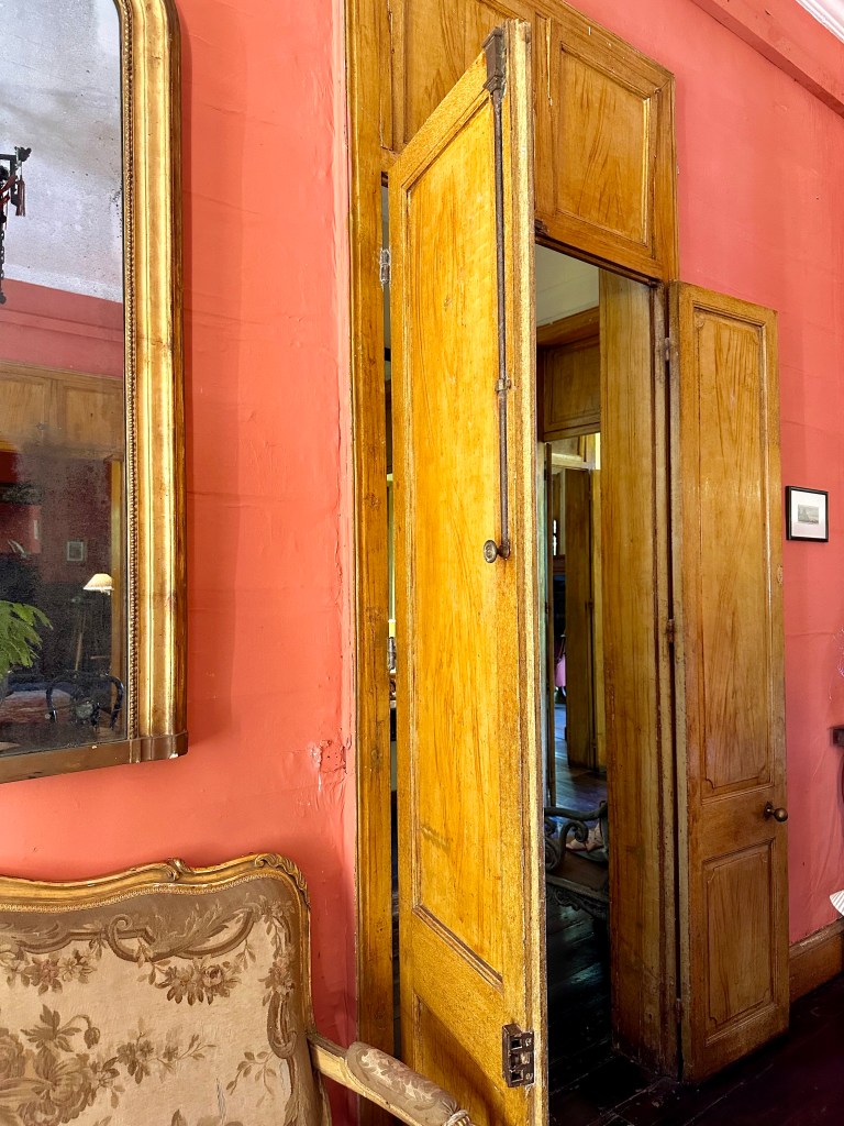I had taken several images of this and other structures throughout the property, pinning them to my design folder on Pinterest, should we ever build in the future. Walking this property, studying the architecture one realizes there are so many features lost to us in the new world with the advent of technology— features that are still useful and esthetic in design. Simple features like decorative split-transom panels above the doorways to allow airflow throughout the home yet affording privacy.