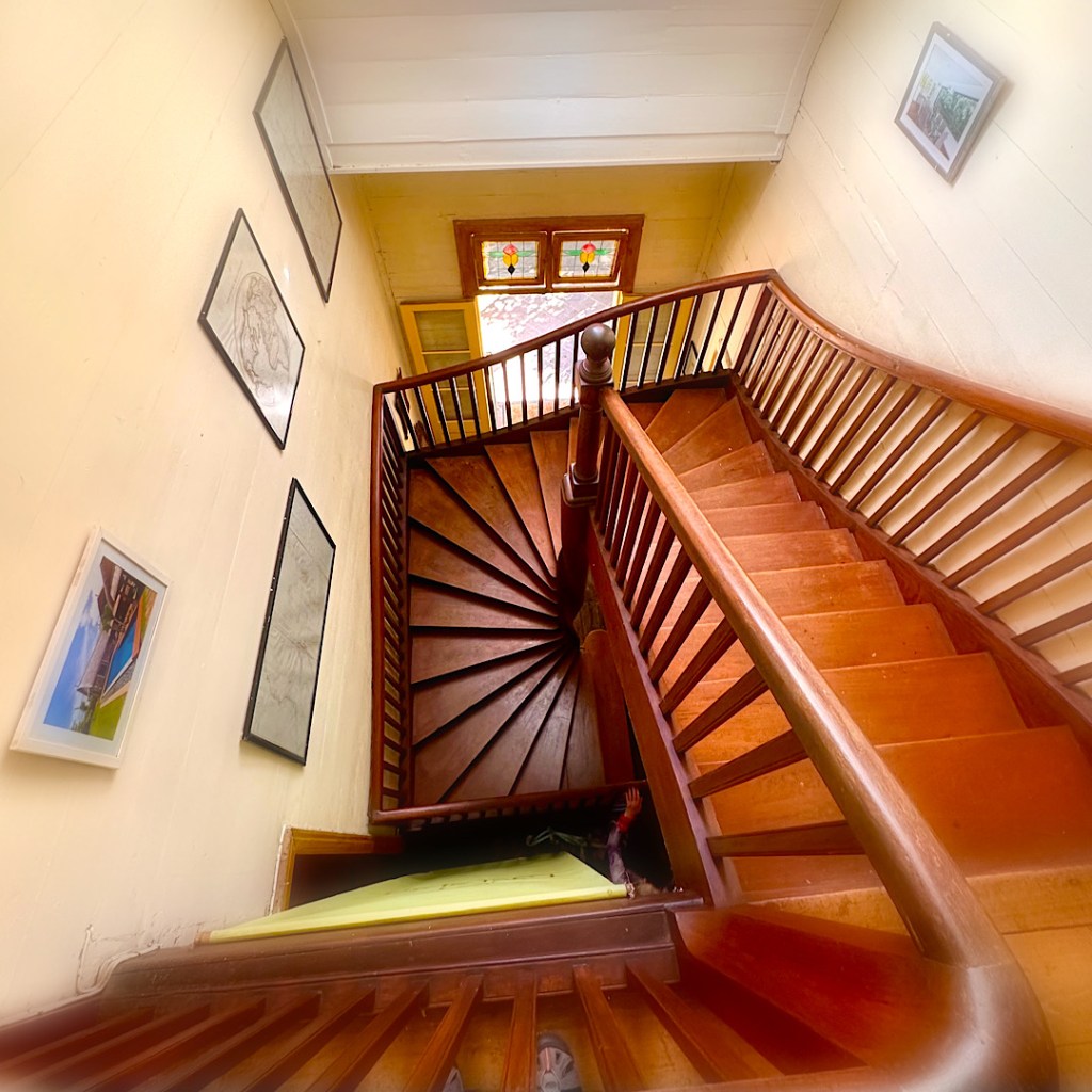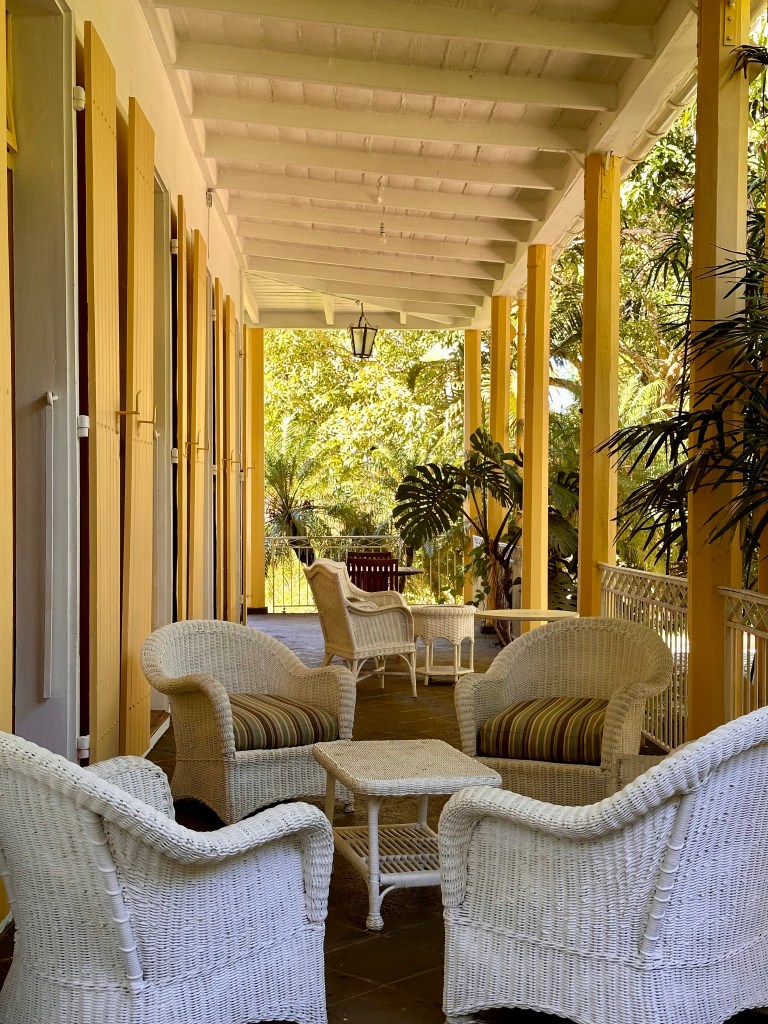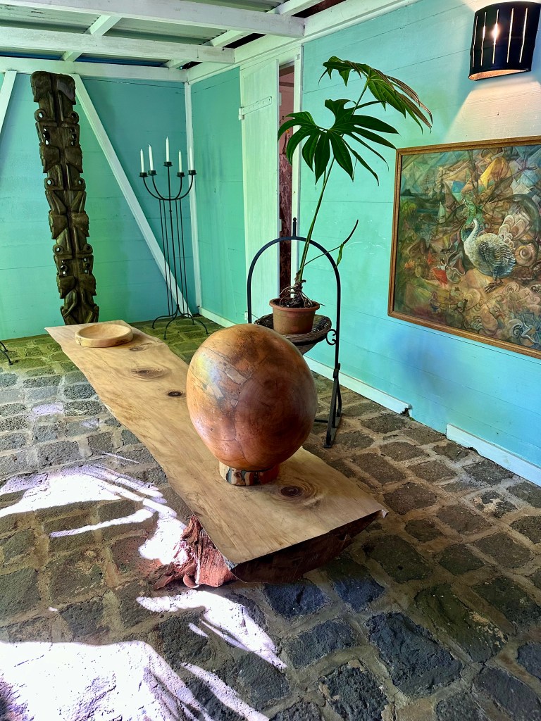 You pass through the carriage house into a courtyard, well curated with fruit trees and pathways lined with exotic species of the island.