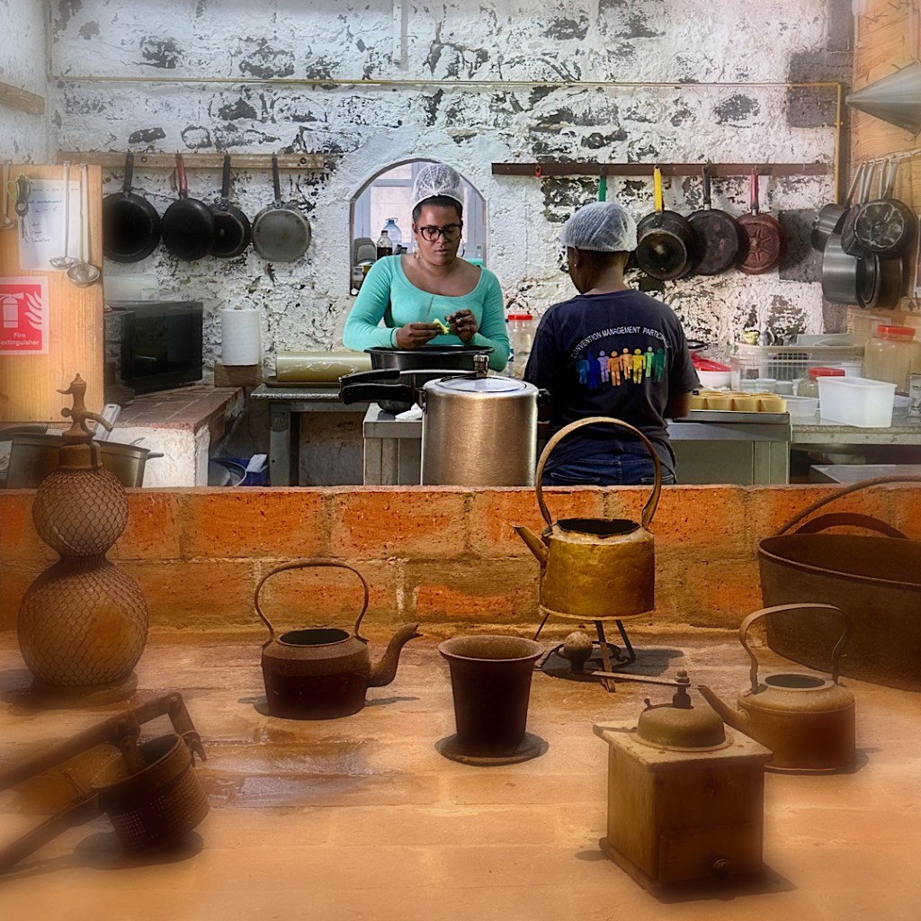 Separate from the home is a free standing cottage dedicated as the kitchen, where spices are ground, flower is milled and clothes are washed and scrubbed.