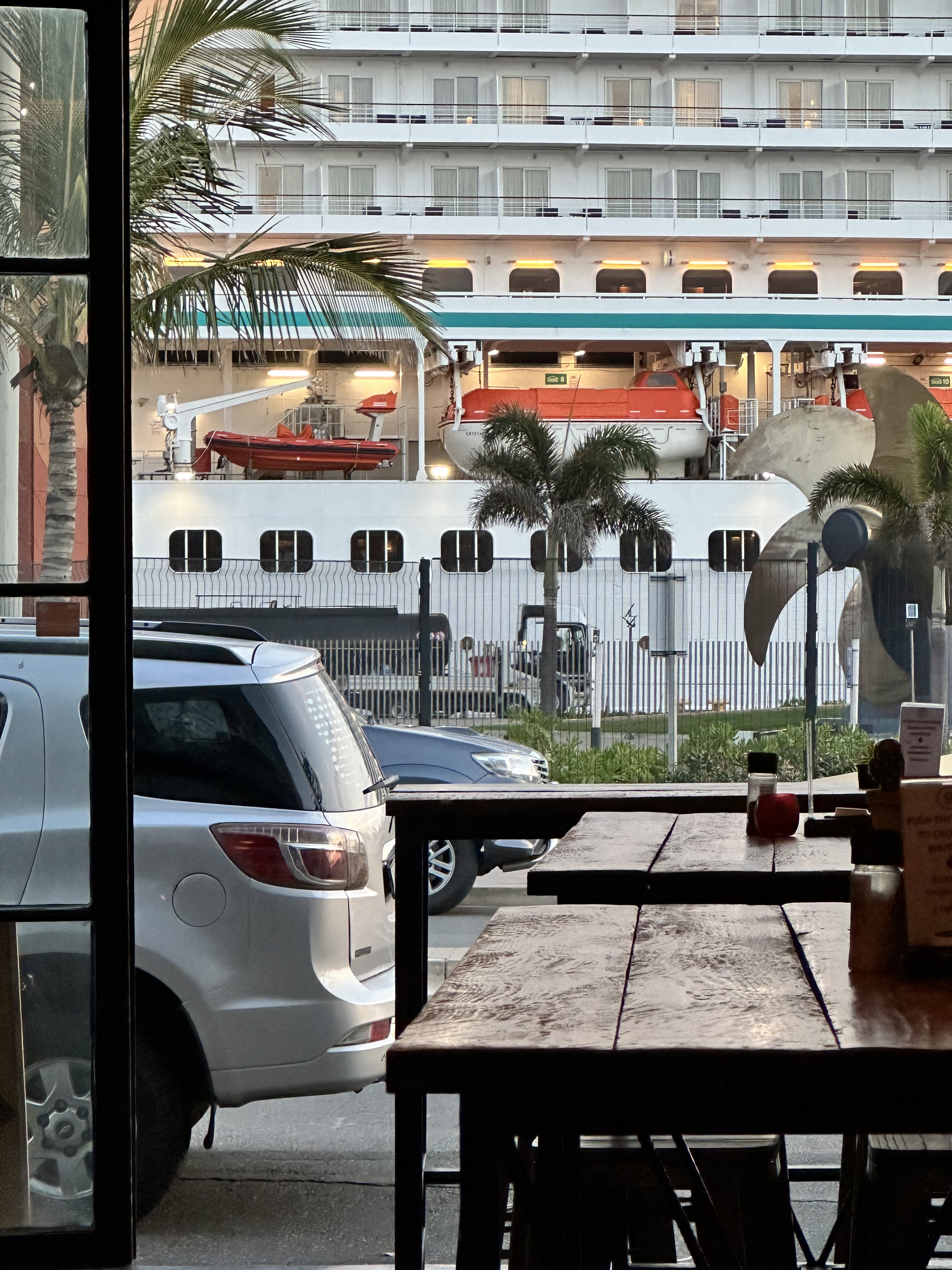After the ship was cleared by Immigration, all the passengers and crew filed off and entered the Nelson Mandela Cruise Terminal to present their passports. When cleared and our passports were stamped, we returned to the ship and were free to get on and off at will, taking excursions or the free shuttle to a nearby shopping area by the beach where you can walk along the Golden Mile.
