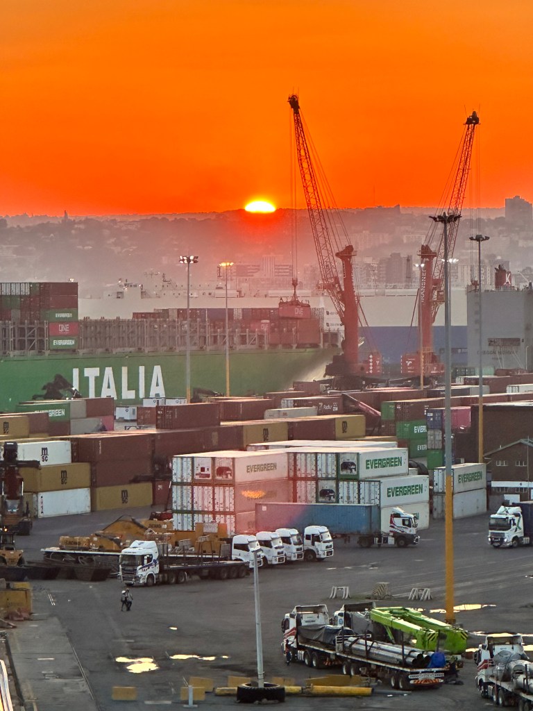 Well that ends Durban. Next stop, Port Elizabeth along the southern coast and two days sail. With Serenity waiting for harbor clearance, I stood out on the balcony with my Pale Ale in hand looking out over the port, where the sun was setting over the hills of Morningside, turning the sky orange, as seen in this jaw-dropping, unedited image below.