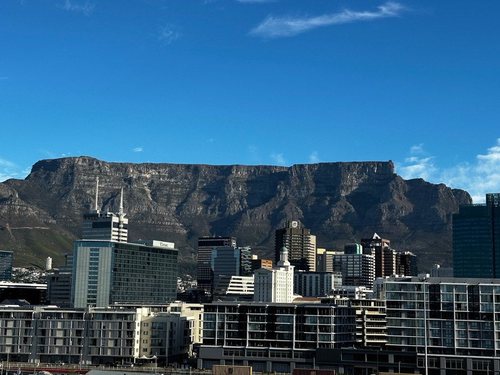 Now it was time to head back to our ship, the bus quiet from a full day’s excursion, and all of us a little tired from the lunch (beers). When Meredith and I got back to our room, kicked off our shoes, our jaws dropped when we stepped out onto the balcony– there was Table Top Mountain in full view.