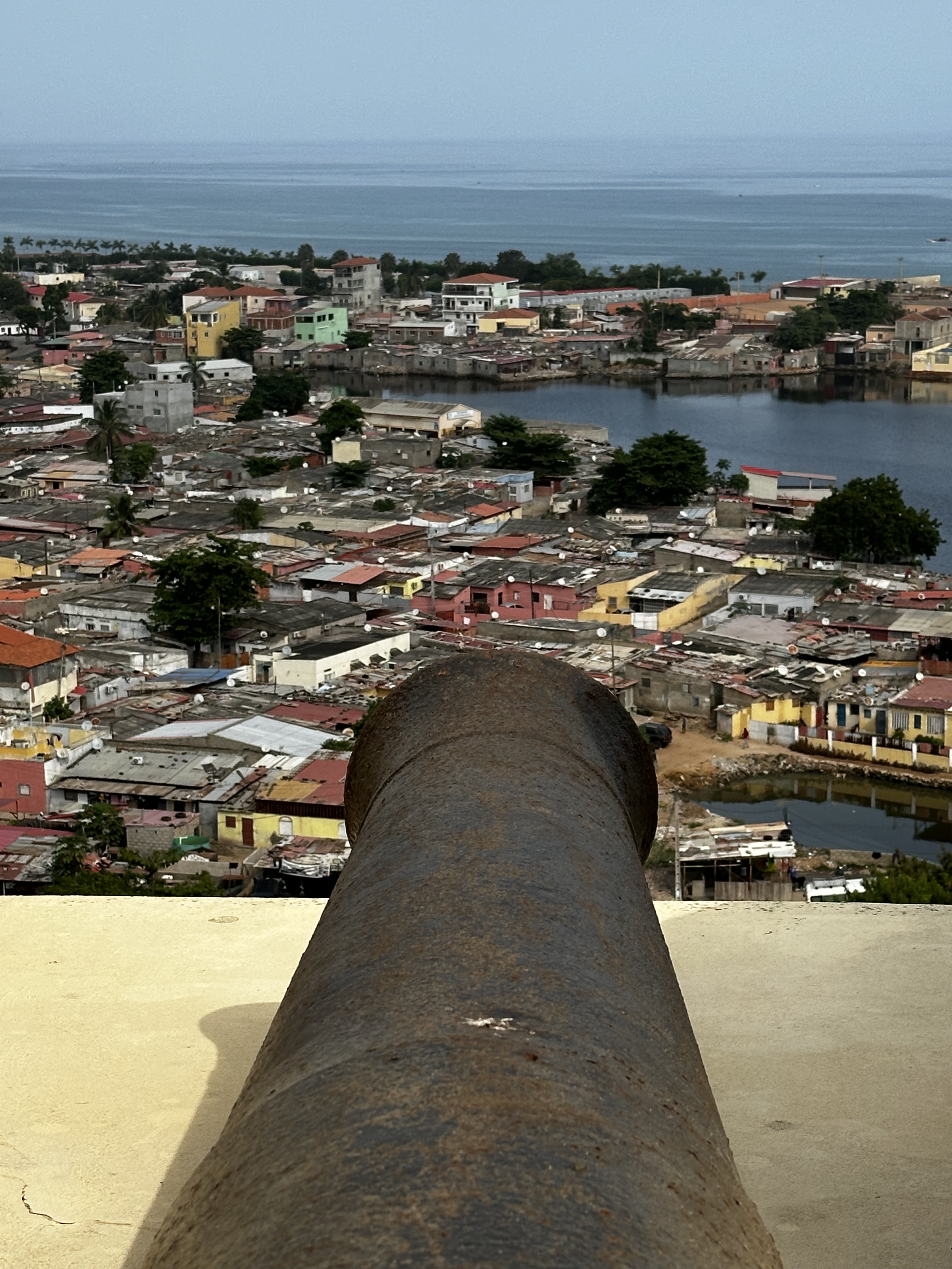 Our first stop on the tour was to a military museum, a fort built by the Portuguese in 1576 called, Fortress of São Miguel. It was beautiful, but sad for our guide, whose parents were gunned down while attending a former Presidential rally, where several white X’s are marked at the base of the statue of Njinga Mbandi, Queen of Ndongo and Matamba (1582-1663), whose story is impressive and I am sure the people would love to have her as President today.