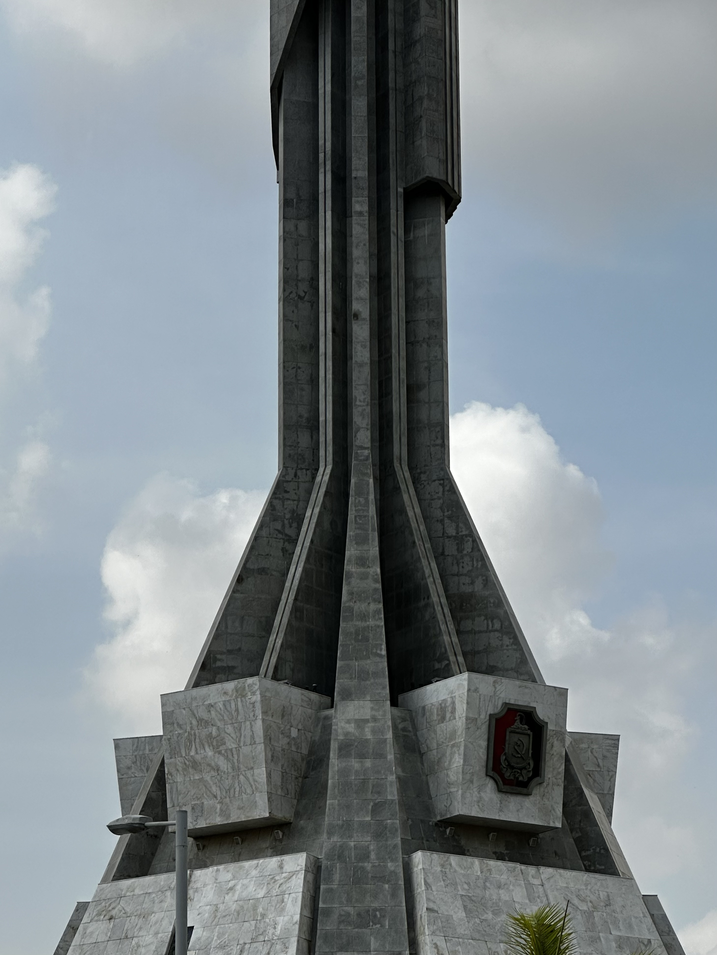 Then we were off to see The Agostinho Neto Mausoleum, but it was closed. Our guide and Police officer talked to the guards for about ten minutes and finally they let us inside the grounds to take pictures, but we were not allowed inside. I’m not one for having a headstone–but this was the coolest headstone I have ever seen, like some alien artifact. Yet I can’t help but think of the expense of this one thing. There is a mansion at the top of a hill in Luanda, where an ex President’s mother lives and the hill seems to be held up by the informal settlements below.