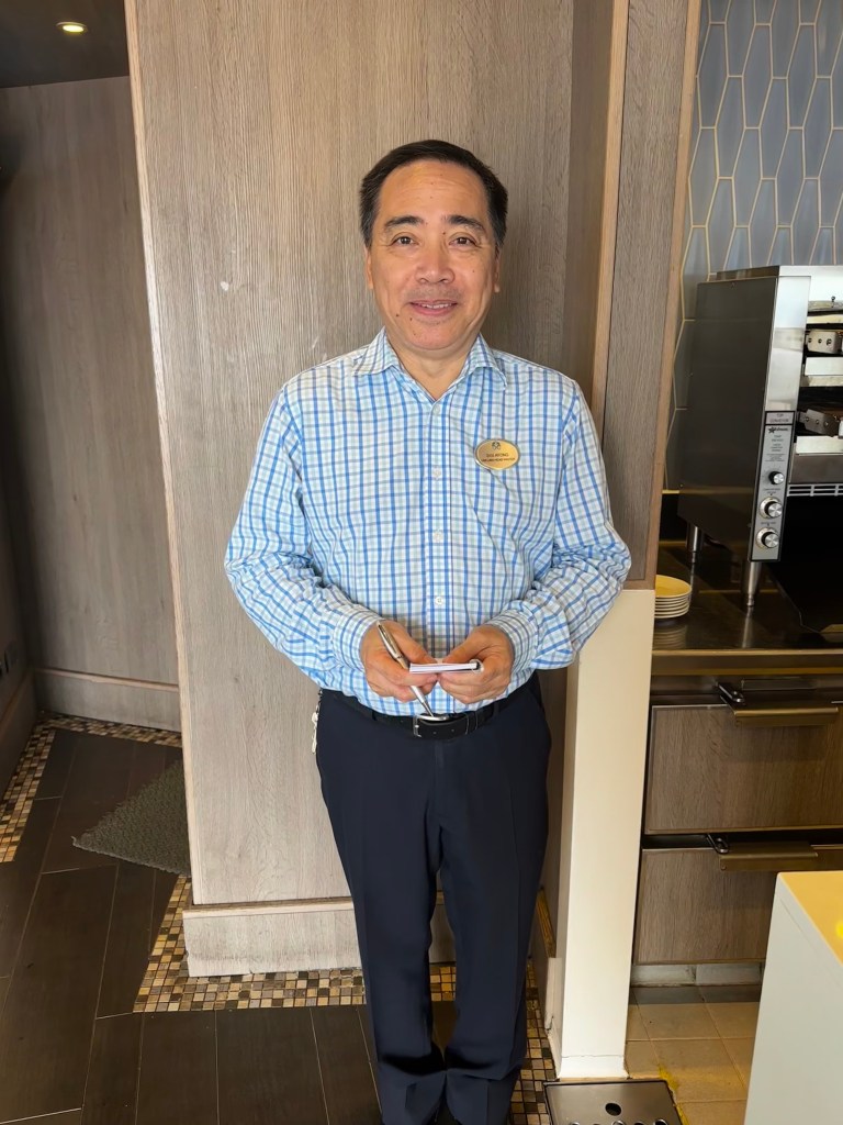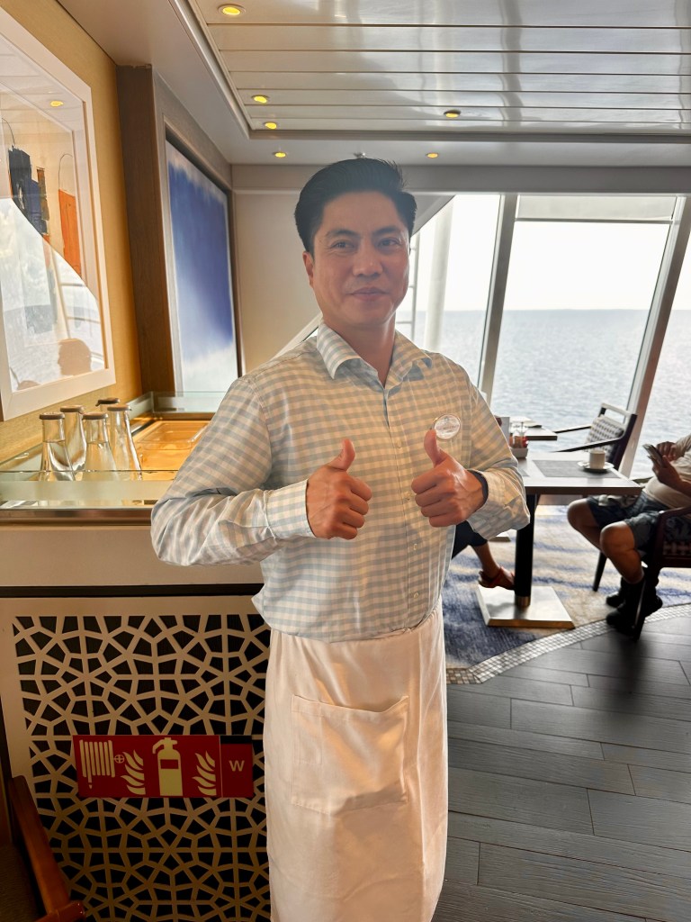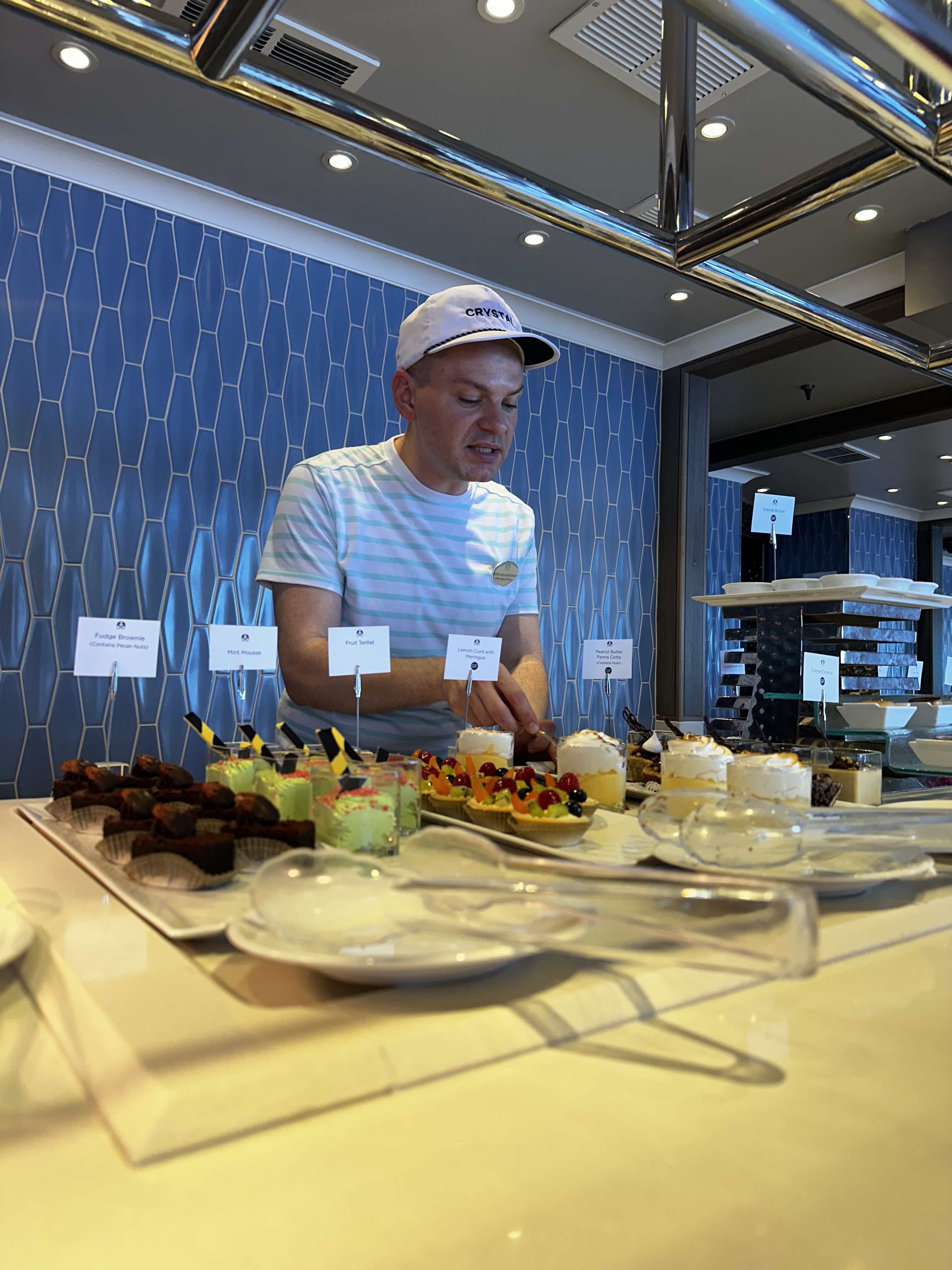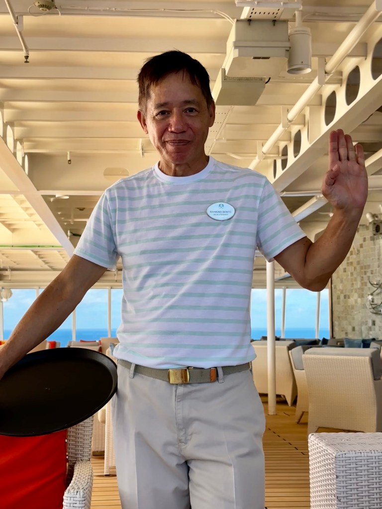 And then there is Raymond, who has one of the most dry and witty senses of humor. He is unforgiving in trying to seat us at his stations, knowing we are on our way to somewhere else. He makes us crack up every time we are with him. Raymond, like everyone else aboard Serenity , look out for each other and no one has the mindset of vocabulary that says, “not my job.” All those years I spent in Corporate America, attending seminars on Service Excellence–– well all they had to do was observe any Crystal Employee to know what service excellence is and Raymond would be the poster child for it.