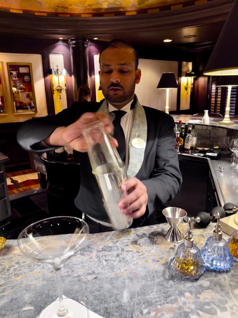 I would like to end this post with someone special, an artist at sea. Afzal Hussain Khan. The flaoting Mixologist known to the Internet (follow him) and bar manager, where you will find him at his craft in the Saloon.